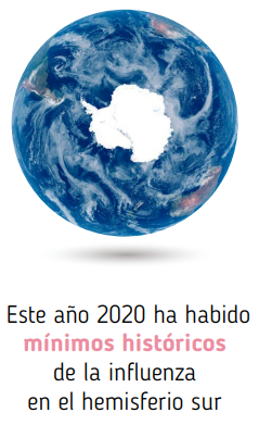 La pandemia de COVID-19 ha tenido un impacto importante en la actividad de la influenza. Entre febrero y marzo de 2020, la actividad de la influenza se elevó en la mayoría de los países del hemisferio norte de acuerdo con una temporada de influenza típica. A partir de mediados de marzo, la actividad de la influenza disminuyó drásticamente, concomitantemente con la propagación del SARS-CoV-2. La implementación de restricciones de viaje, estrategias de mitigación y medidas de distanciamiento social es probablemente la razón por la que disminuyó la actividad de la influenza. En consecuencia, se han informado niveles muy bajos de detección de influenza a nivel mundial, incluso en países de la zona templada del hemisferio sur. Se desconoce qué impacto tendrá el bajo nivel de actividad de la enfermedad en las próximas temporadas de influenza y qué tipos y subtipos de virus de influenza comenzarán a circular ampliamente cuando se reanuden las interacciones sociales.